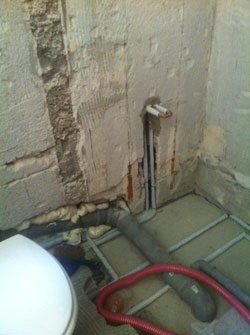 Wasserleitung durch Abfluss verlegt. Folge: Wasser und Schimmelschaden