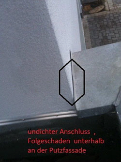 Undichter Anschluss, Folgeschaden unterhalb der Putzfassade