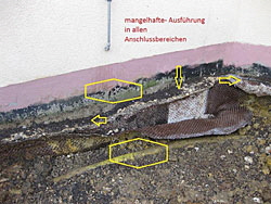 Mangelhafte Ausführung in allen Anschlussbereichen