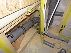 Außenwand eines Fertighauses in Holzrahmenbau - Hauptsache man kommt zum Abfluss