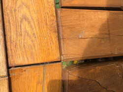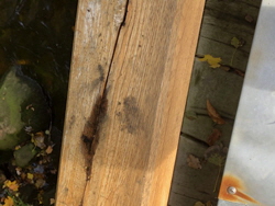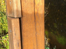 Schlechte Holzauswahl und fehlender konstruktiver Holzschutz bei einer 1 Jahr alten Holzbrücke